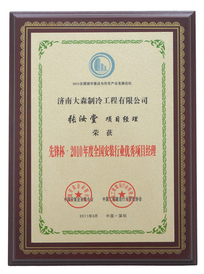 2011全國安裝行業(yè)優(yōu)秀項目經(jīng)理